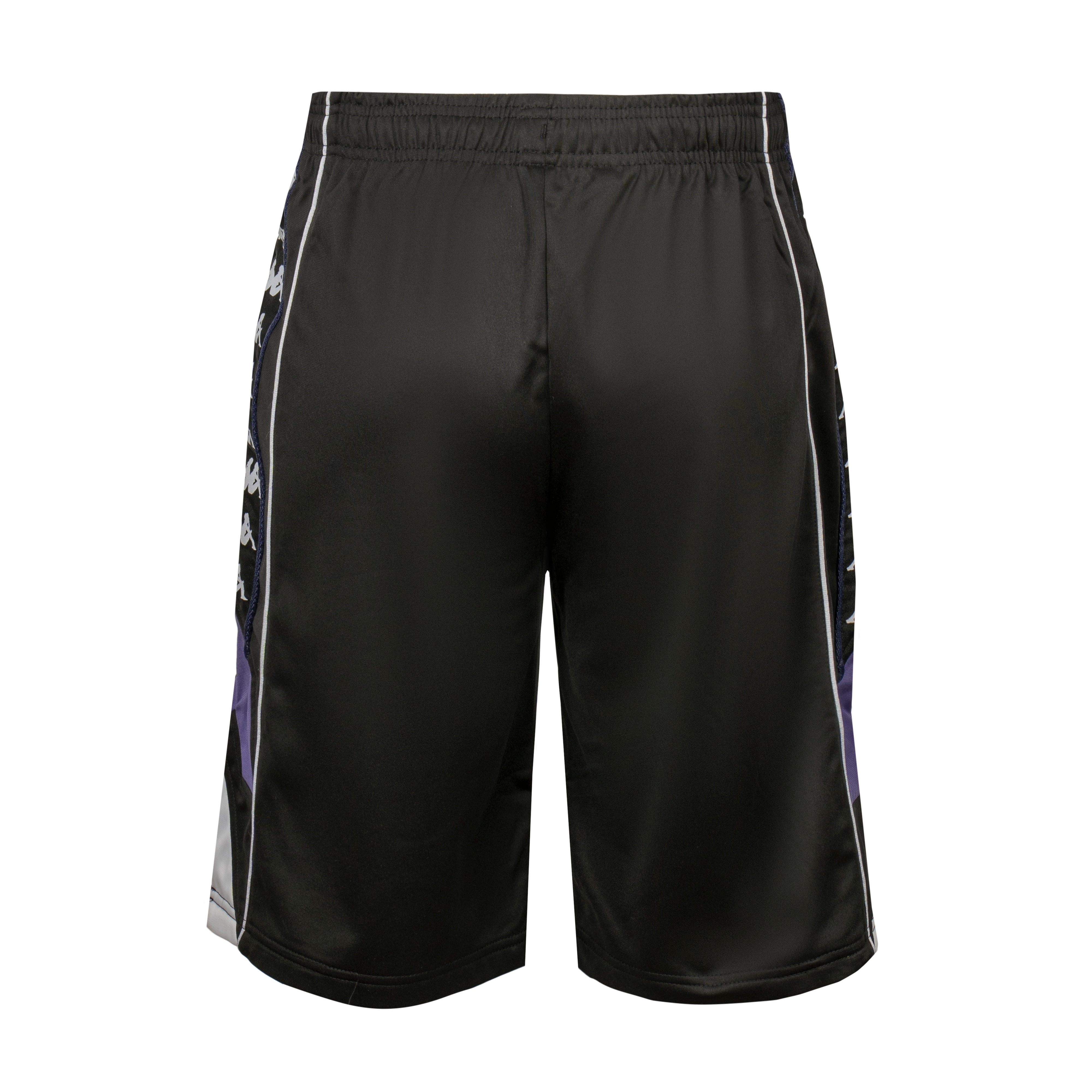 Este short deportivo destaca por su diseño en azul, acompañado de una composición gráfica muy característica en la zona lateral baja: dos bloques diagonales en violeta y blanco que aportan dinamismo y un acabado visual moderno sin recargar la prenda.