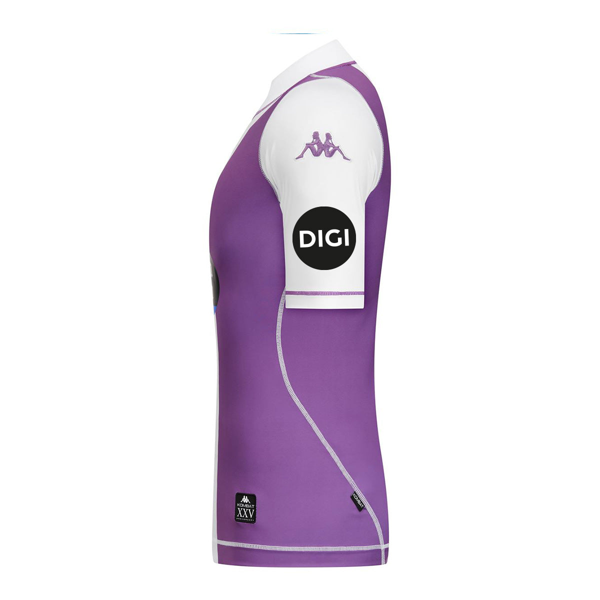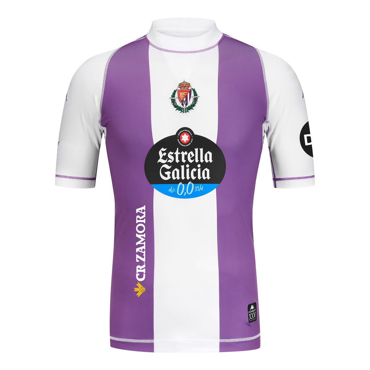 Camiseta de fútbol KOMBAT XXV VALLADOLID, creada para celebrar el 25 aniversario del emblemático modelo Kombat 2000. La camiseta Kappa x Real Valladolid está confeccionada con un tejido innovador. con un corte ajustado, hiperelasticidad y un confort óptimo. Representa la evolución de la histórica tecnología KOMBAT: una camiseta conmemorativa que renueva la leyenda, ofreciendo un rendimiento aún más avanzado.